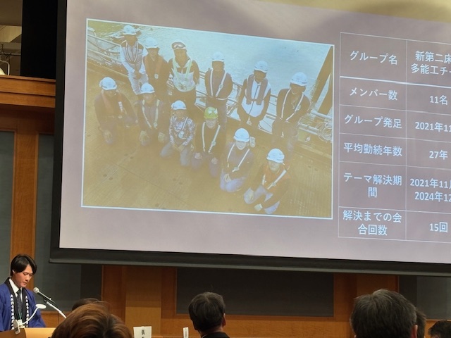 第46回協力会社改善事例全国発表会で2事例を報告 7月に開催された北陸地区を代表し、10月24日ホテルイースト21東京で行われた全国大会に参加しました。 大河津分水路新第二床固改築1期工事より2事例を報告 1、土木部門・・・令和の大改修をフィールドした改善の取組み 2、安全・担い手部門・・・ドローンによる資材運搬へのチャレンジ